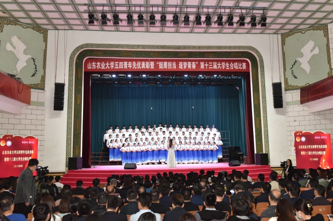 决赛现场,8支队伍分别演唱指定曲目校歌《携手登攀 ,共创辉煌》和一首自选曲目。水土学院一首《复兴的力量》拉开比赛序幕,声音响亮,气势恢宏,点燃了全场热情;经管学院和林学院演唱《我爱你中国》,青春的气息,悠扬的旋律,表达着对祖国和学校的热爱;动科学院一曲《春天的故事》,歌颂了改革开放后日新月异的新气象与气壮山河的新步伐,展现了山农学子紧跟党走,砥砺奋进、勇毅前行的决心;食科学院一曲《在灿烂的阳光下》唱出了同学们对党的赞颂,对祖国美好未来的希冀;农学院、资环学院、信息学院分别演唱了《星辰大海》《一路生花》《我喜欢》,展现了山农青年凝心聚力、团结一致、奋勇争先的良好风貌。经评委打分评议,动科学院、林学院合唱队获得一等奖,经管学院、资环学院、信息学院合唱队获得二等奖,食科学院、水土学院、农学院合唱队获得三等奖。比赛结束后,岱下青年合唱团进行了汇报展示。